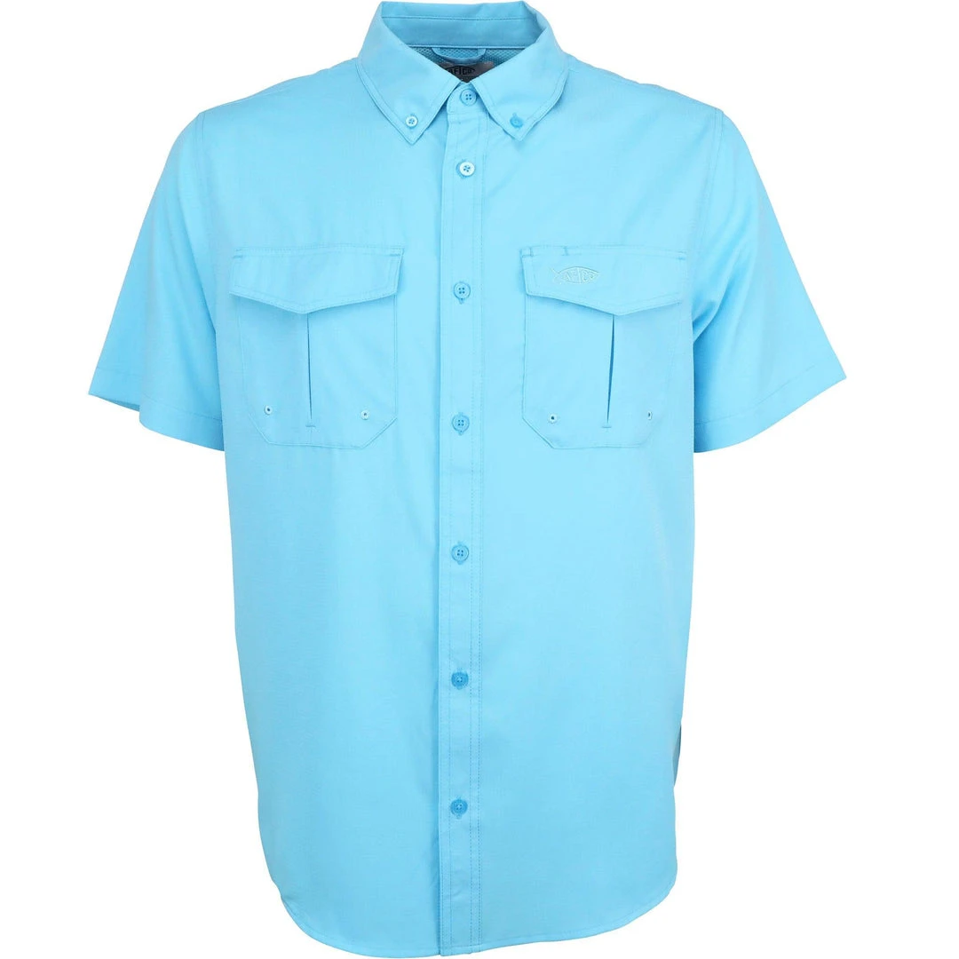 Don’t overlook this vented AFTCO Rangle Vented Short Sleeve Shirt. Constructed with lightweight polyester ripstop fabric, Rangle features vertical rear venting that helps you stay cool in sticky situations. Built-in AFBLOCK UPF 50 sun protection shields you from harmful UV rays and AFGUARD stain release technology defends against fish blood and funk.