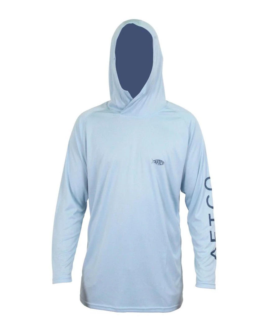 The AFTCO Jigfish Samurai sun protection hoodie fishing shirt is the ultimate in protection from the harmful effects of the sun’s UV rays. The 100% polyester long sleeve has breathable stretch fabric, is QuickDry, and blocks 98% of UV rays. The Samurai fishing hooded sun shirt for men features an AFTCO Fish logo on chest, and a bold sleeve hit.