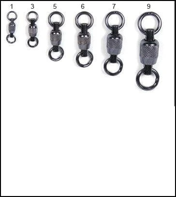 The Billfisher Krok stainless ball bearing swivel has actual ball bearings in the swivel which allows it to rotate easily, eliminating line twist. The high grade stainless steel is extremely rust resistant and strong for their size. The rings are welded so they are tough as nails.