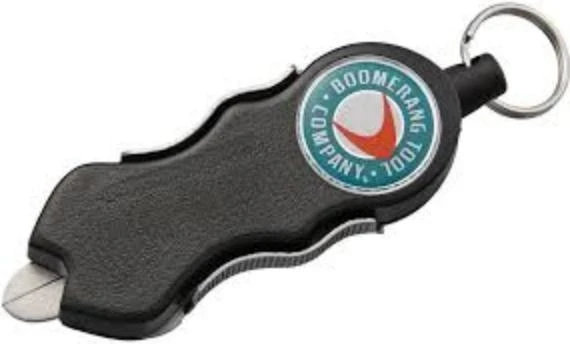 The Boomerang Snip XL and Big Snip “Salty Dog” are perfect for cutting mono or braid. The XL has an extra long set of cutters for reaching into hard to reach places. These cutters cut braid, mono and fluorocarbon with ease. The blades are stainless steel so rusting is kept at bay and the retractable cord allows you to attach it to most anything so you don’t loose it. The Big Snip is perfect for salt water applications or bigger line. The whole snip is bigger and the teeth are made of thicker metal and bigger serrations to cut bigger line. As always, they both come with a retractable lanyard and ring.
