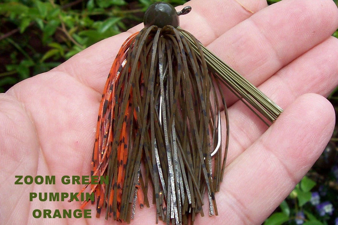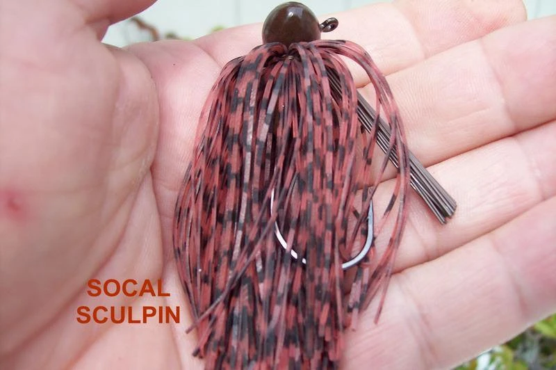 California Reservoir Lures Johnny C Pro Staff Football Jigs are hand tied 55 strand silicone jigs. Why have a jig that’s hand tied?  Jigs that are hand tied last many years to come because instead of a rubber band that holds the skirt to the jig head it’s tied with either thread or wire.  The rubber band can get old and deteriorate leaving the jig useless.  Hand tying the jig keeps all the skirt together and securely attached to the jig head.