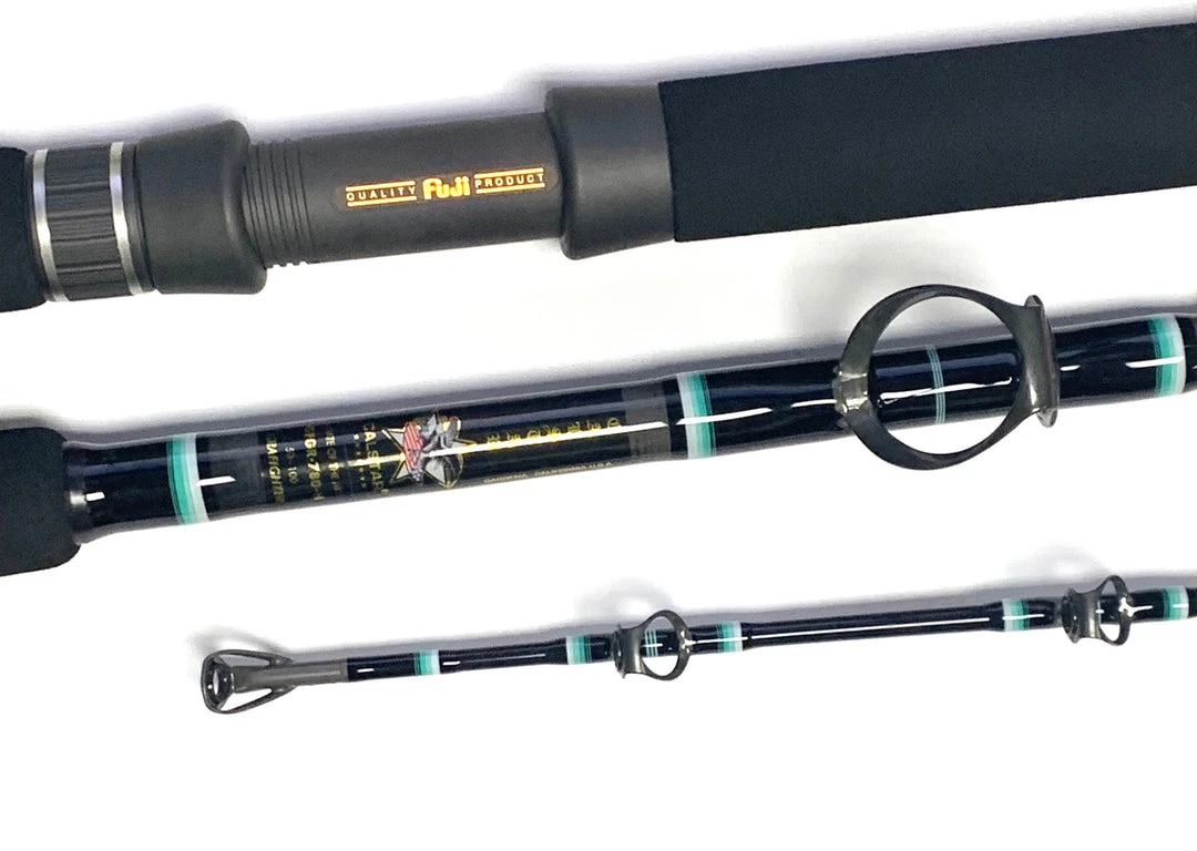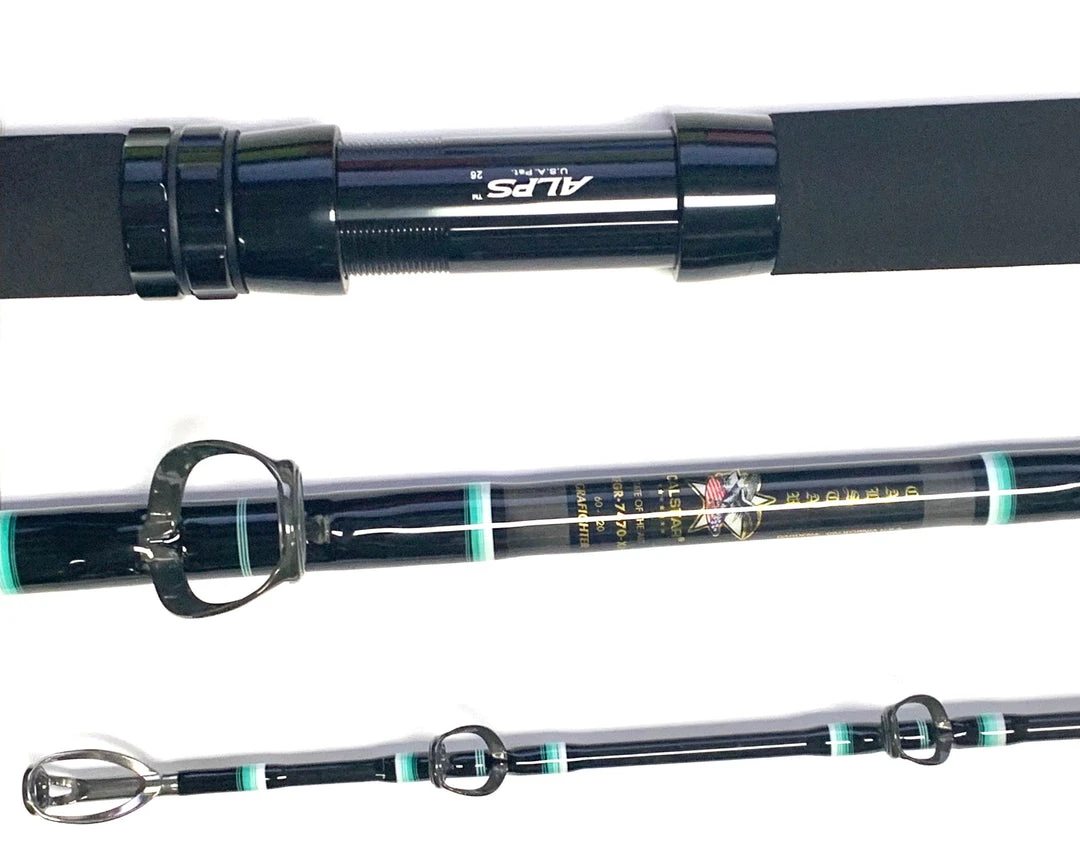 Calstar Grafighter Rail Rods are made from Calstar’s state of the art Graphite giving them the action you are looking for and the backbone you need to fight those big fish. The Calstar Grafightersย are a gray/black composite rod blank with white, teal and black wraps.ย Graphite and fiberglass from butt to tip.ย Grafighters are state of the art fishing rods, built with a level of strength, durability and performance unmatched! All tested designed and proofen around our west coast fishery. These rods are light in weight, yet provide a strong recoil for landing the biggest ones! Definitely unmatched!