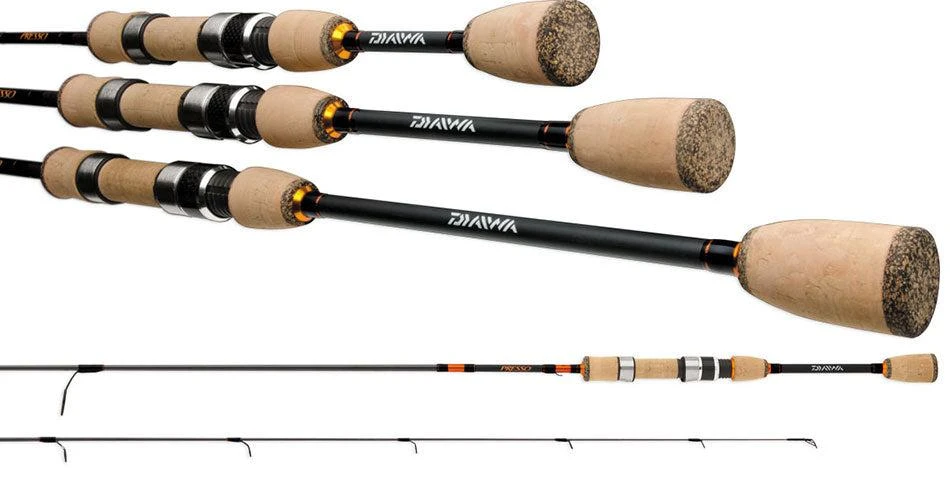 The Daiwa Presso Ultralight Spinning Rods are far superior ultralight rods, actions come in lengths up to 8′ for a combination of casting power with light lures shock absorbing action to handle strong fish on ultra-fine lines. Micro-pitch taping of the blank during curing assures even distribution of resin and graphite for maximum power and sensitivity. PRESSO ULTRALIGHT SPINNING RODS FEATURES: IM-7 Graphite construction Micro pitch blank taping Minima reel seat with machined clamp nut, woven graphite insert Minima black ring guides Lightweight split grip cork handles Hook keeper! The Presso lineup is a great affordable option that anyone can enjoy, keeping quailty at a low cost is the name of the game for this stunning lineup of ultralight rods.