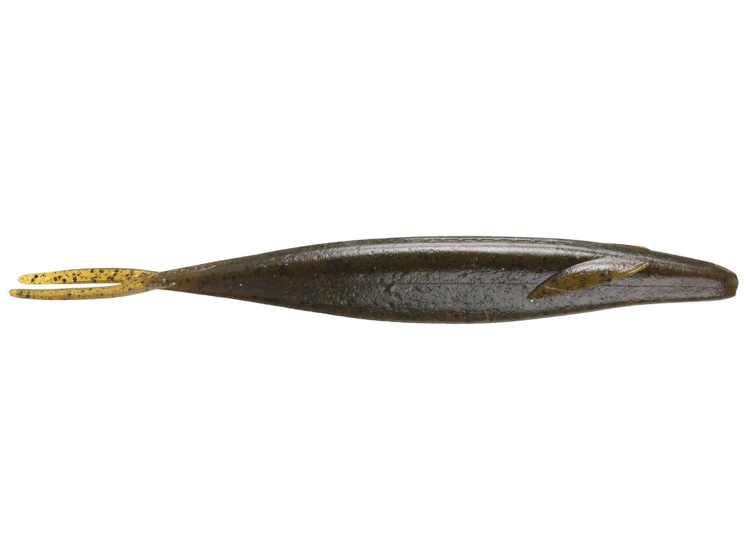 It can be fished weightless to imitate baitfish trying to escape near the surface and jumping out of the water. It can also be fished on the bottom with a split-shot or Carolina-Rigs and the bait will dart near the bottom like a fish looking to hide.