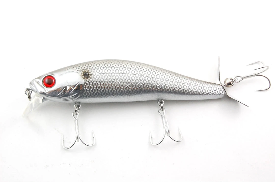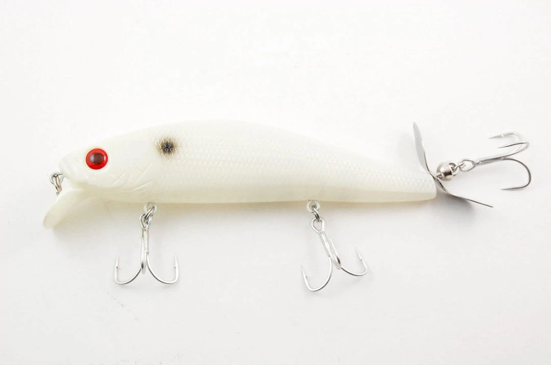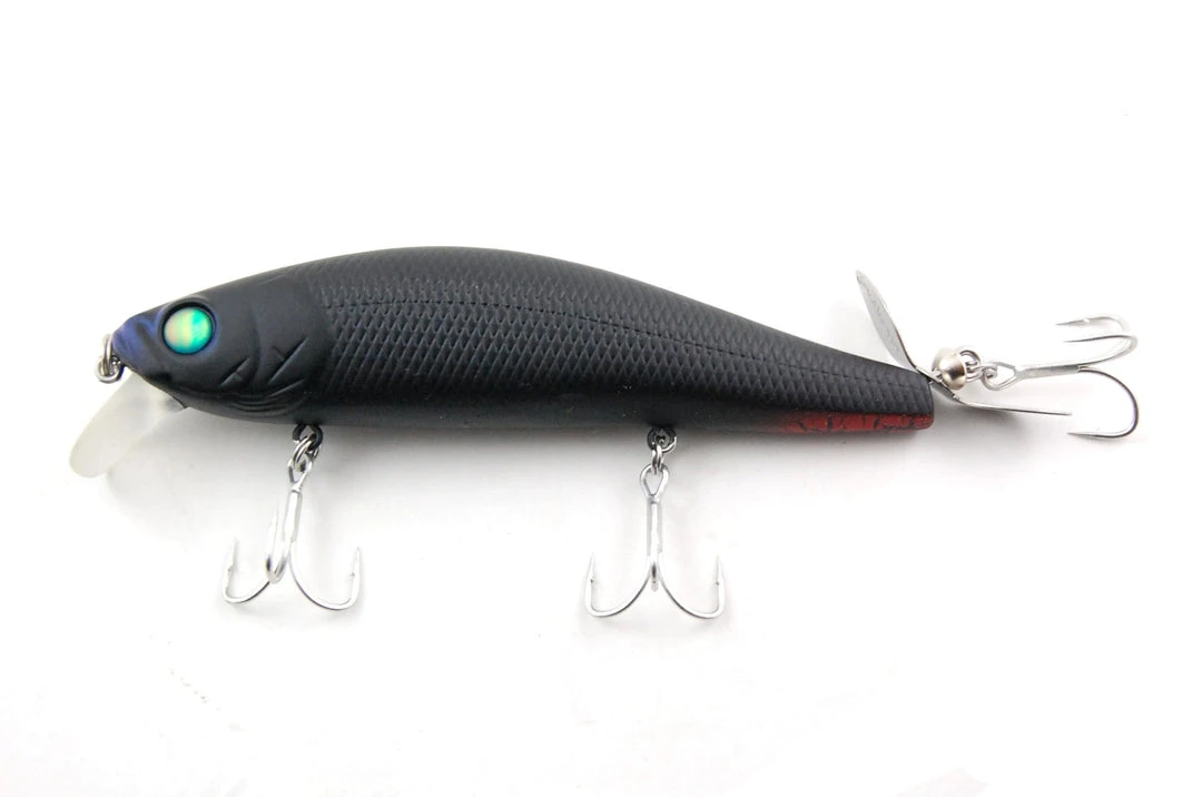The DEPS Spiral Minnow redefines the concept of a wake bait. Very effective on the surface or just beneath it, it has an uncanny ability to get fickle bass to attack. Its flatter sides produce a sharper and quicker wobble-and-roll when retrieved, and the prop continuously causes a ruckus with an enticing clanking sound and bubble trail.