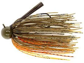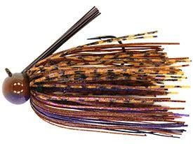 The football shaped head and flat eye hook of the Dirty Jigs Finesse Football jig allows the hook to ride upright at all times. This makes all the difference in getting those fish to the boat when fishing clear water with light line. Features a 60° flat eye Mustad ULTRA POINT 1X strong jig hook with new 4.3 Microsharp Point Technology, a large lead barb plastic trailer keeper, and skirt collar that accepts our double rattle system. Skirts come full length giving you the option of a full skirt or trim the front to achieve a slim spider cut profile.