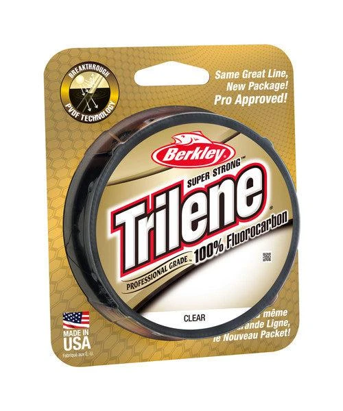 Berkley Trilene 100% Professional Grade Fluorocarbon line is very strong and has low memory. This invisible fluorocarbon has similar refractive index to water, so fish can’t see it. It has proprietary 100% PVDF formula specially processed for the ultimate in impact strength, low memory and superior casting.