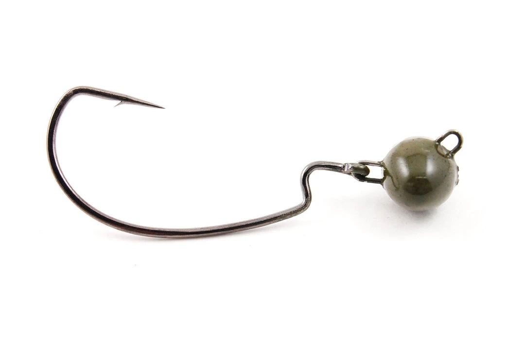 The Pivot Point Football Jig offers two wire loops, one as a 60 deg. line tie and the other connects to a pivoting Gamakatsu SuperLine Offset EWG Hook. This design allows the plastic bait to freely move and float while you work the bait giving you the most natural presentation possible. Just Texas Rig your favorite soft plastic craw, creature, or worm to this head and hang on.