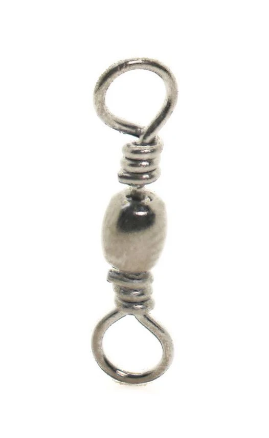 Designed to eliminate line twist and make a dependable and strong link between the main line and a leader. The Mustad Barrel Swivel is made from high quality materials and will not let you down. When choosing a swivel always go small. Pick a swivel, which will match the breaking strength of your line. This will give the best performance and presentation. When tying your fishing line to the swivel eye make sure to center the knot, as this will ensure the best rotation. Made from brass, for either saltwater or freshwater use. Black Nickel finish.