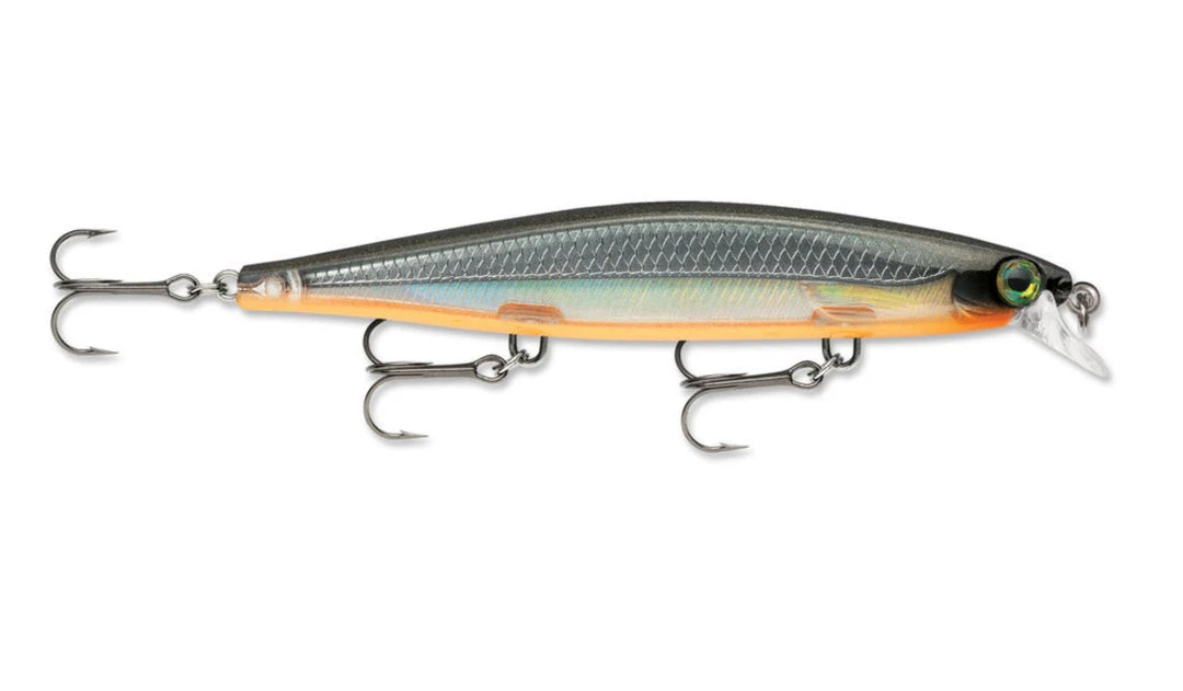 The Rapala Shadow Rap features a minnow body style, flat sides and a metallic finish with textured scales. The look and swimming action of this lure is so close to a real minnow on its last leg, fish are simply unable to resist. Sharp left to right turns allow you to fish the Shadow Rap with little forward travel, so you can stay in the strike zone longer. The Shadow Rap is designed to target bass and other gamefish in two-to-four feet of water. Features super sharp VMC black nickel round bend hooks.