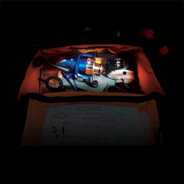 Keep your maps and/or license dry, LED light swivels to see inside the backpack