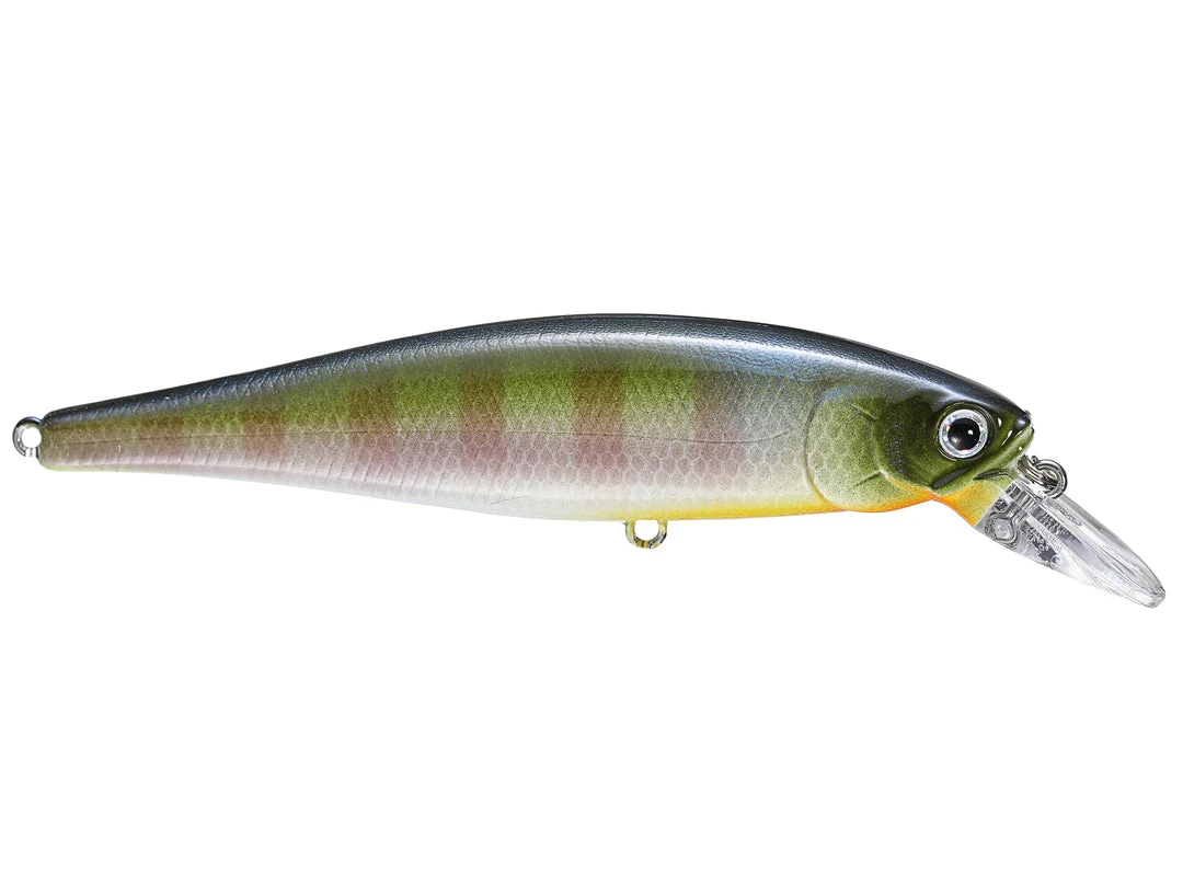 If you’re looking for a great size jerk bait, the Lucky Craft Pointer has been designed with a very low center of gravity through the use of special brass weights. We love the action on the Pointer 65, 78, and 97MR, try them out depending on the size of the baitfish you’re mimicking. The low center of balance causes the lure to wobble and vibrate whenever the retrieving motion is stopped. It will suspend 4 -5 feet deep and will emit an intriguing bass-calling vibration, while in the suspended state. A short twitch of the fishing rod will generate the “Walk the Dog” action under the water.