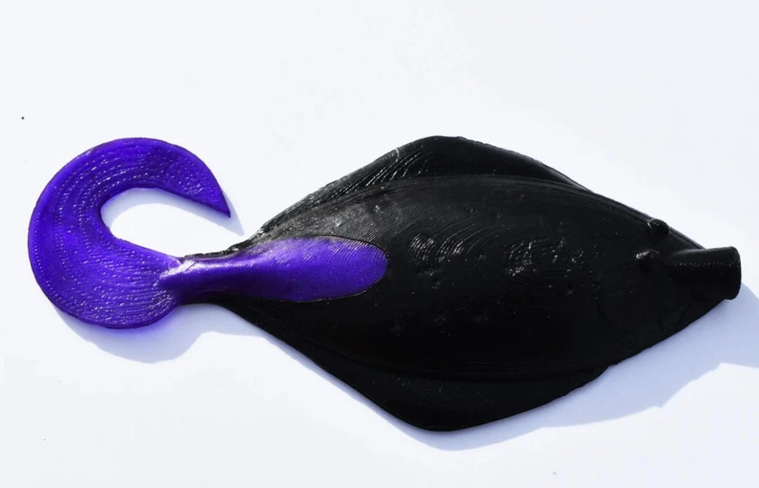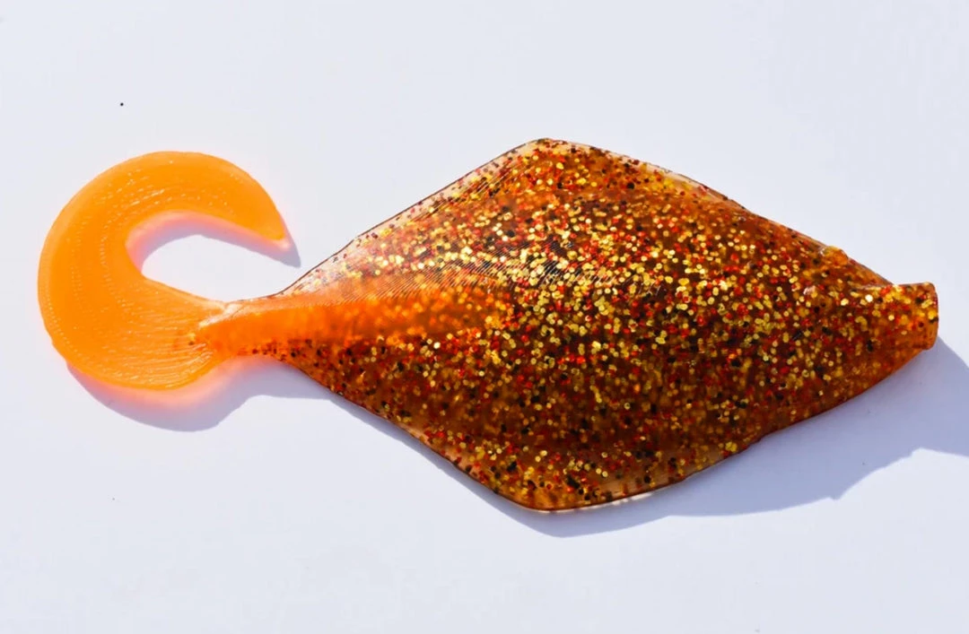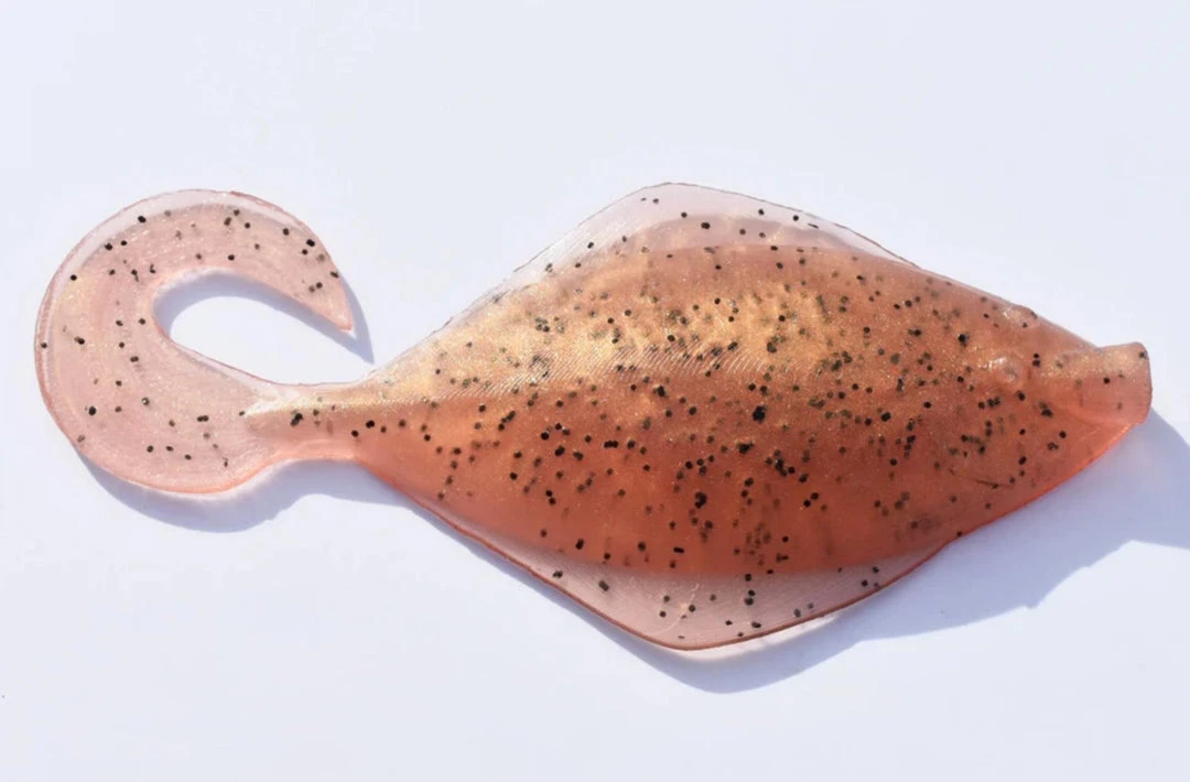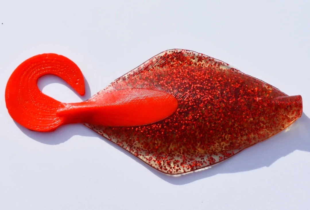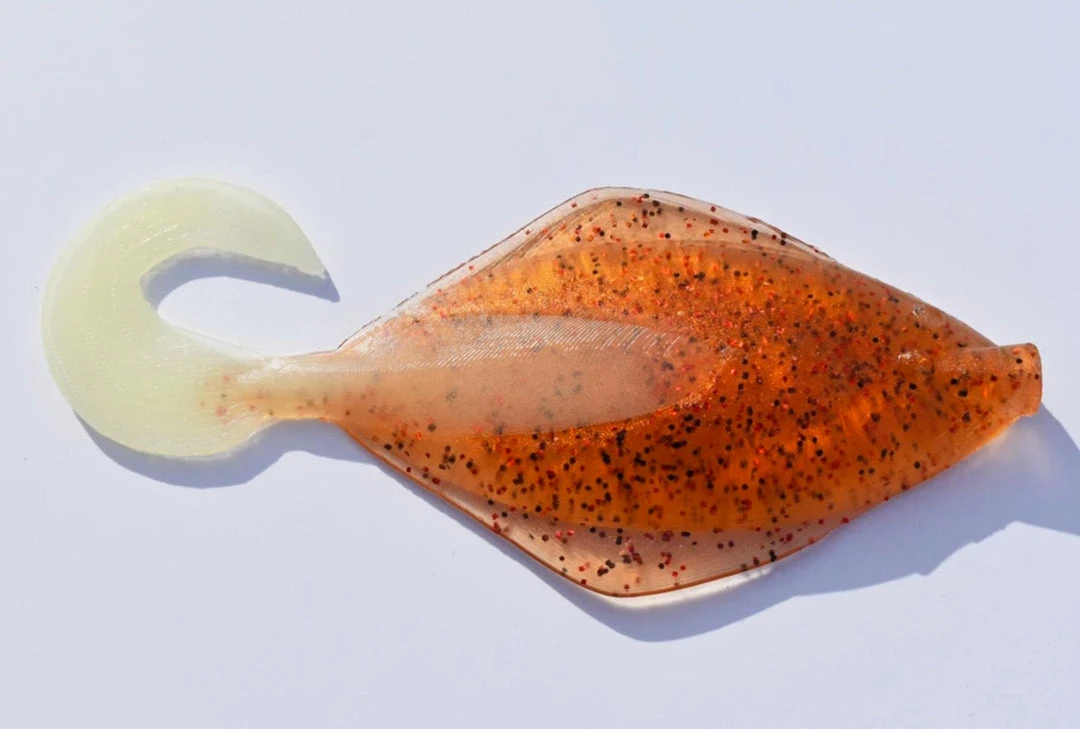 The Madame Sand Dab is 7 inches in length with a small grub tail to provide vibration. It’s fished best with a 6 or 8 ounce lead head lightly jigged off the bottom. Some people have pinned these baits to a single dropper loop as well with great success!