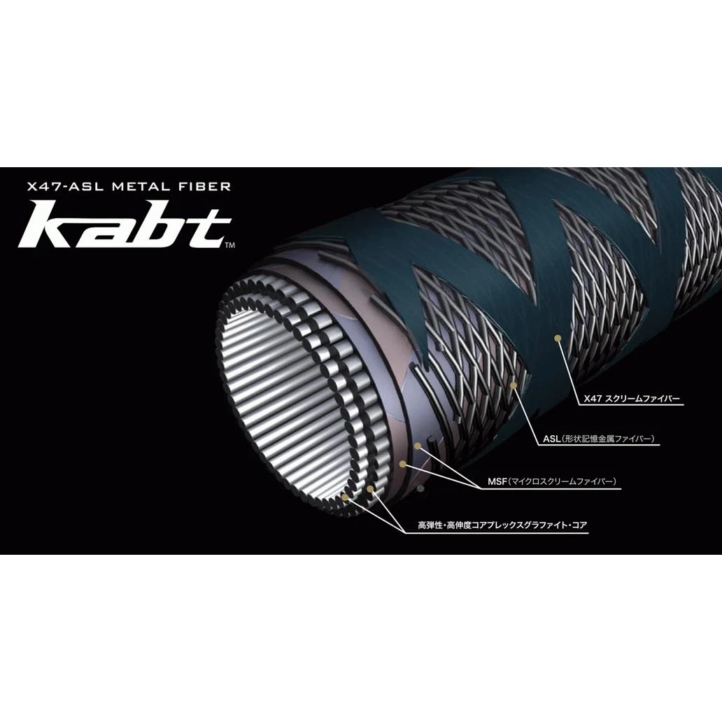 - kabt™ (p. ‘kabutoh’): The astonishing tensile strength and tenacious resilience of the kabt‘s shape-memory metal microfibers are woven into a layered, multi-axis arrangement that reinforces the butt-section of each blank, delivering a superior power-to-weight ratio and more decisive lifting-power and control.
