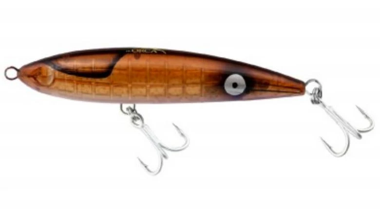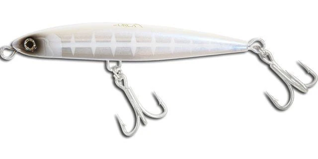 The Shimano Orca Lure is tough as nails and targets big fish feeding on the surface. Efficient aerodynamic design creates a long powerful cast. The proprietary internal weight position produces an erratic pop & dive action. Ultra sharp, high tensile strength treble hooks secure your catch. Either walk the dog or skip it on the surface, working the Orca is all about a reaction bite.