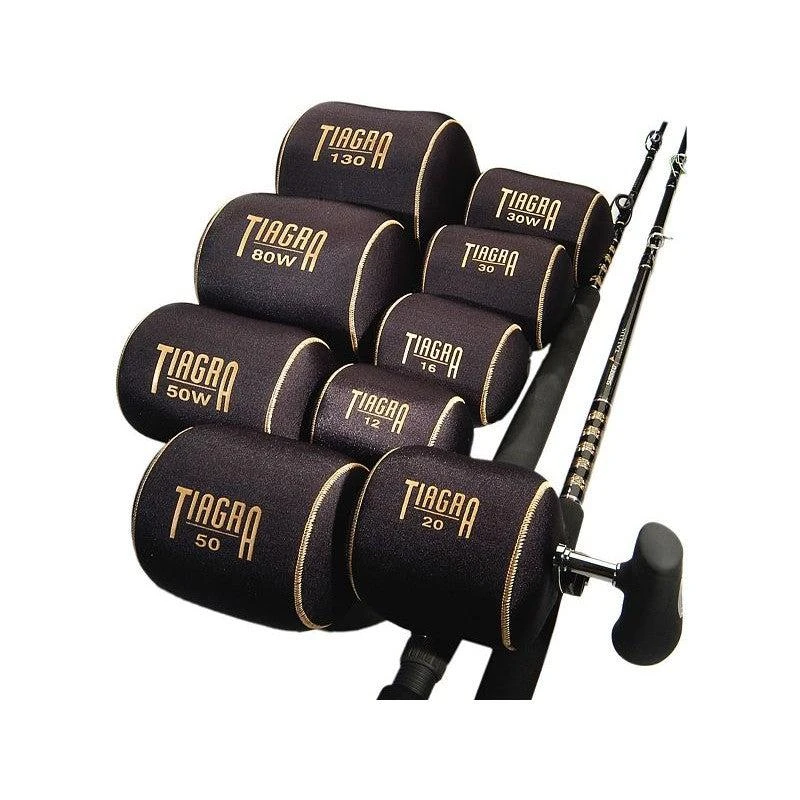 The Shimano Tiagra Reel Covers features include: 5mm neoprene sides, Gold logo and stitches over shiny black fabric match the color of Tiagra reels and Tallus rods. All reel covers fit perfectly to specific size of Tiagra reels.