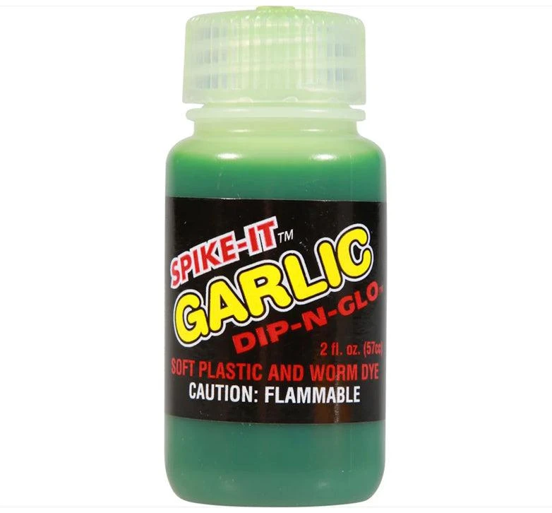 Spike It Dip N Glo plastic worm dyes deeply penetrate your plastics for a consistent dye. They are also spiked with scent that also penetrates deep into the bait for long lasted scent. Dip-N-Glo is specially designed for dipping soft plastic lures to instantly dye and produce permanent color changes. Our scented varieties provide a powerful scent that is the longest lasting available. Dip-N-Glo has given anglers the upper hand on their competitors for more than 25 years. Don’t go fishing without it!