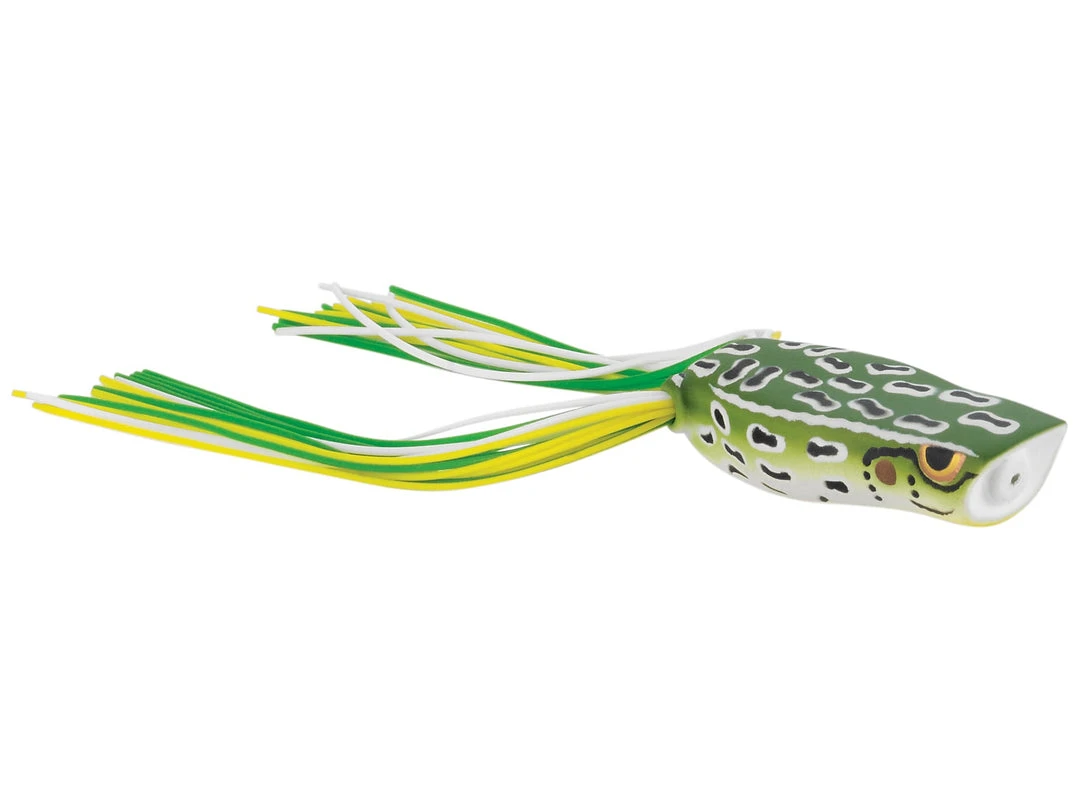 Outfitted with premium hardware, the Spro Dean Rojas Bronzeye Poppinโ Frog 40 features a 1/0 Gamakatsu EWG Double Frog Hook that provides lightning-fast hook penetration and plenty of power to remove big fish from heavy cover. Offered in Sproโs proven fish catching colors, the Spro Dean Rojas Bronzeye Poppinโ Frog 40 is the perfect frog to throw when the fish ignore larger topwater offerings.