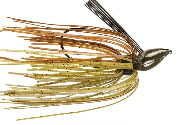 Utilizing a cobra shaped head, the Denny Brauer Structure Jig is the ultimate choice for any structure fishing with a jig. Designed by renowned jig fisherman, Denny Brauer, Strike King’s Structure Jig seeks to increase hookups while simultaneously decreasing hangups. Each element of this jig was painstakingly tweaked until they all worked in harmony and met Brauer’s demands. Constructed around a special zero degree line tie Owner 2x Strong Cutting Point Hook, this jig presents optimal bite delivering the hook penetration necessary when fishing in and around structure. The unique positioning of the cobra head places less material between the hook point and line tie – which follows the theme of better hook-up ratio by keeping the plane of the hookset clear of obstructions. When it came to reducing hangups, Strike King found the cobra shaped head to be much more effective at freeing itself from snags – sort of acting like a counter weight against the snag. Increased weedlessness can also be attributed to the Structure Jig’s weedguard angle that Brauer developed based on years of cutting down and tweaking his stock jigs guards the way he preferred.