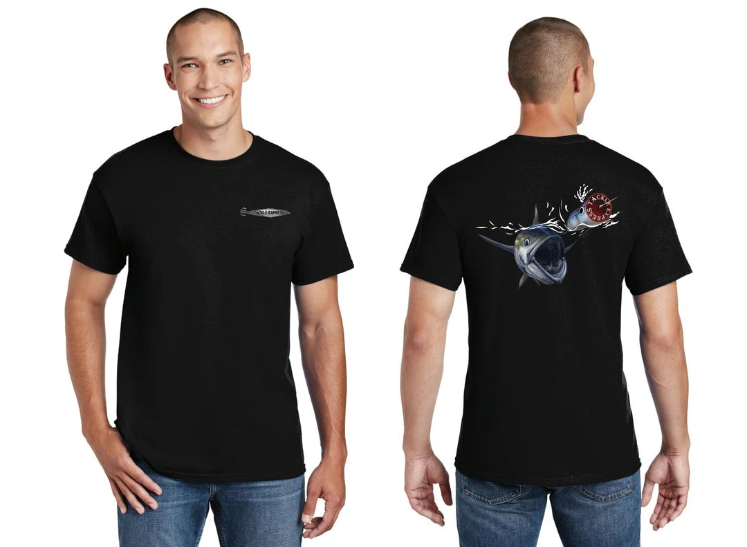 This Tackle Express exclusive Tuna Popper Shirt is sure to turn heads. It’s been created by our good friend Tony, he is an amazing artist with a passion for swimbait fishing. The print on the back is sublimated which means it won’t have a plastic feel to the shirt. You can hardly tell it’s even there, no big sweat patch on your back. Â